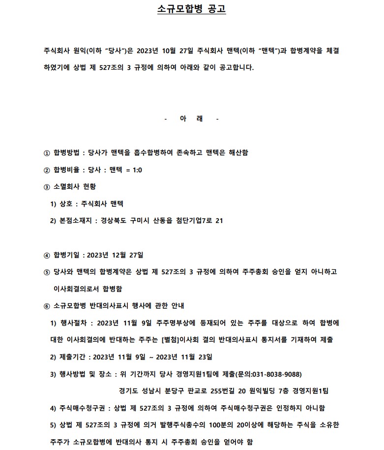 첨부 file 소규모 합병 공고.pdf (113,859 KB)