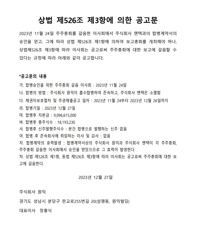 합병보고 공고